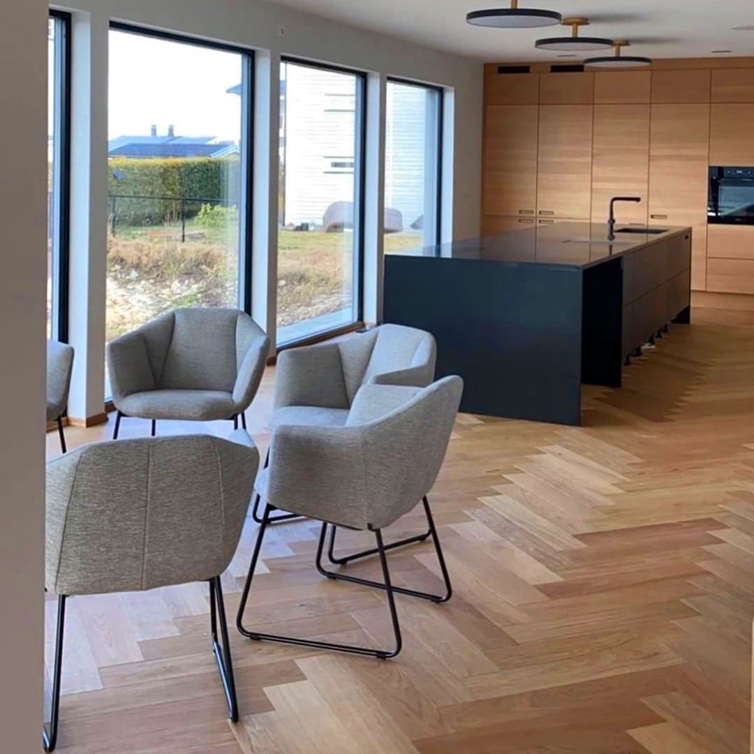 Dette gir et eksklusivt mønstergulv som fungerer like godt i moderne som i klassiske interiør.