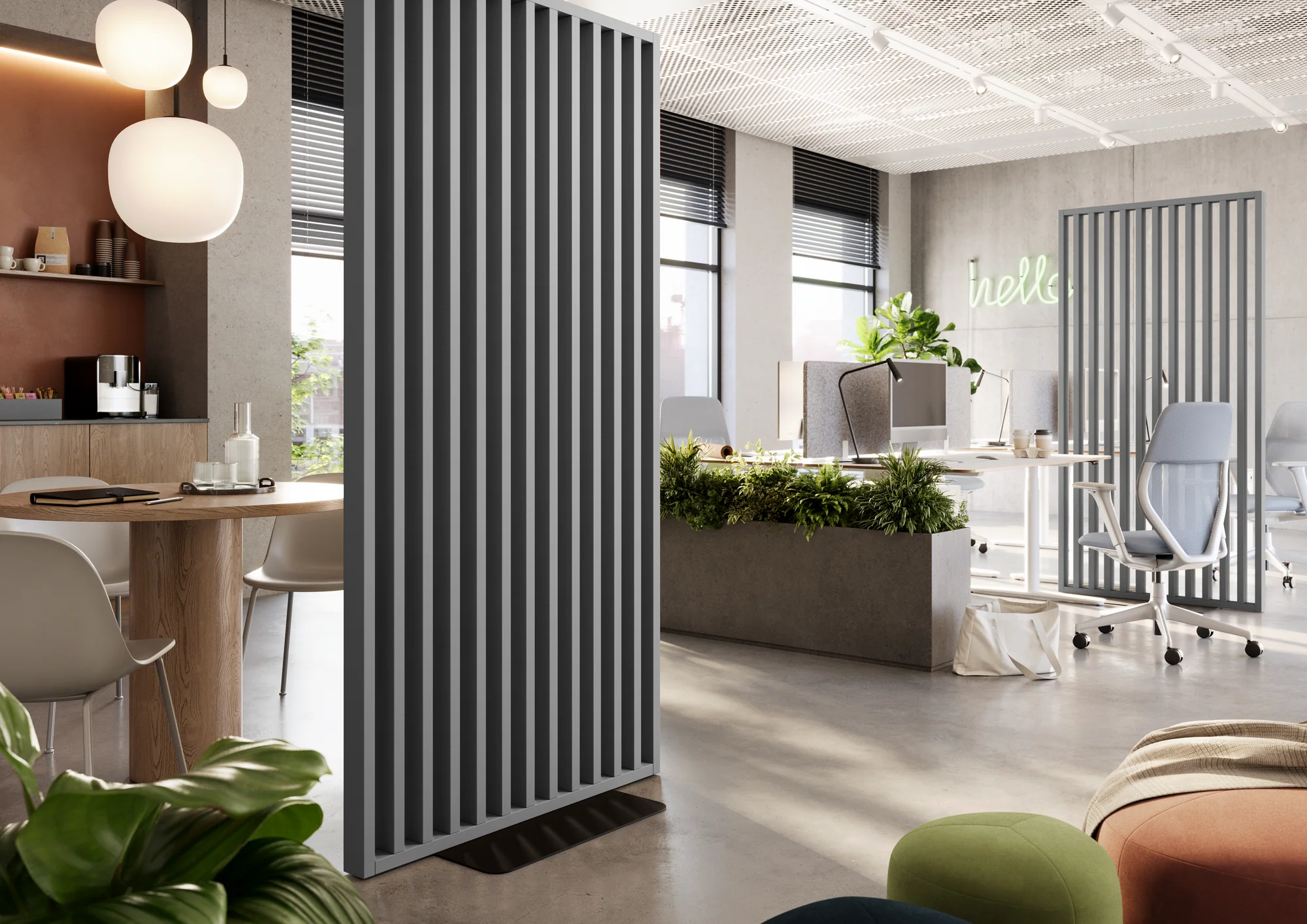 Veggen står stabilt på basen, men er samtidig helt mobil, så du kan flytte den og endre plassering når behovet endrer seg. Perfekt for leide boliger, kontor og rom der planløsningen ofte justeres.