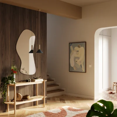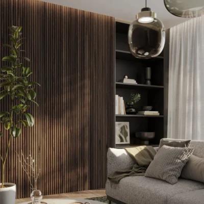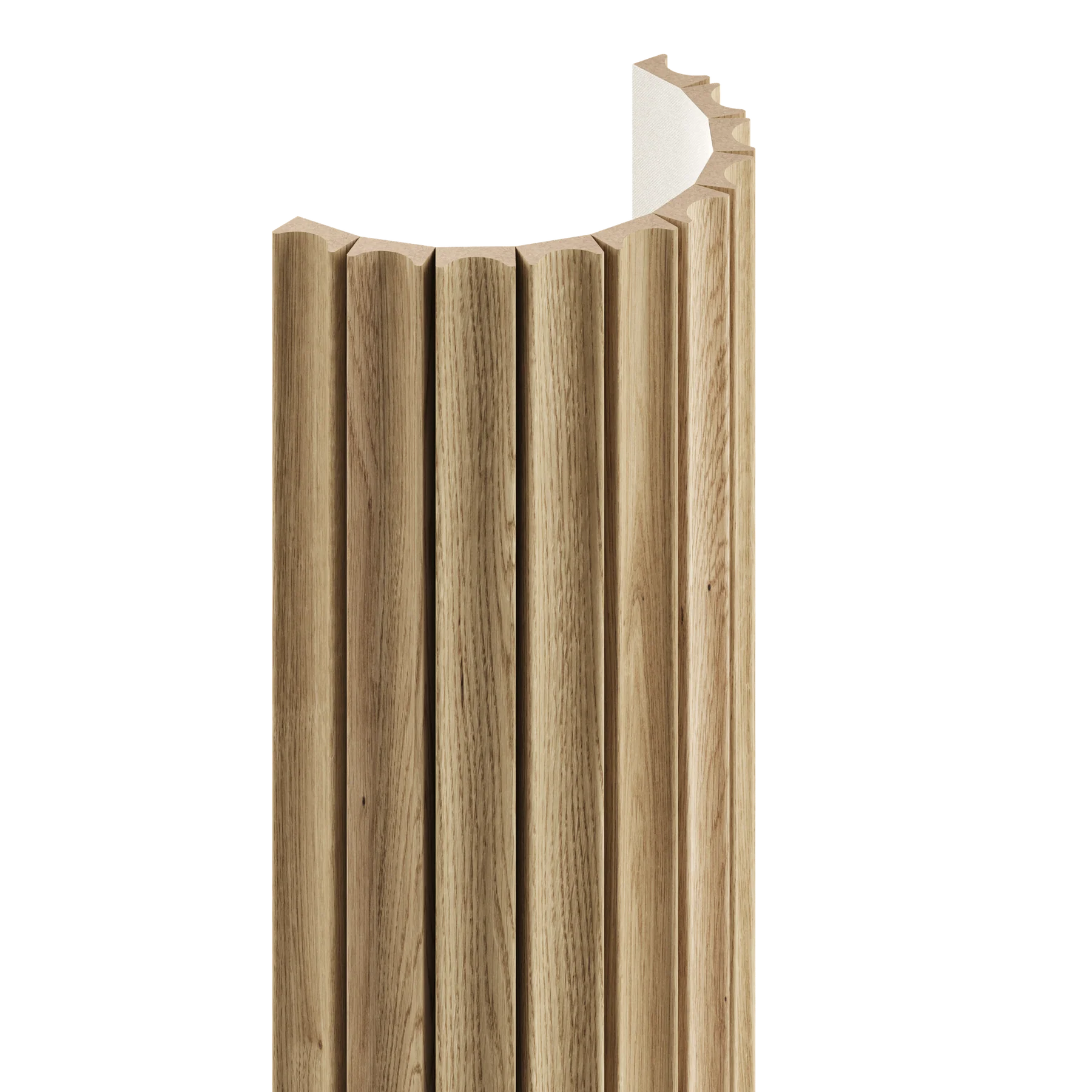 Lameller på stoff er en veggdekor som gir flere muligheter enn vanlige paneler. Lamellene er festet på en slitesterk og fleksibel tekstilbakside, slik at løsningen passer både på rette vegger og på buede/avrundede flater – som søyler, runde vegger eller andre ujevne overflater.