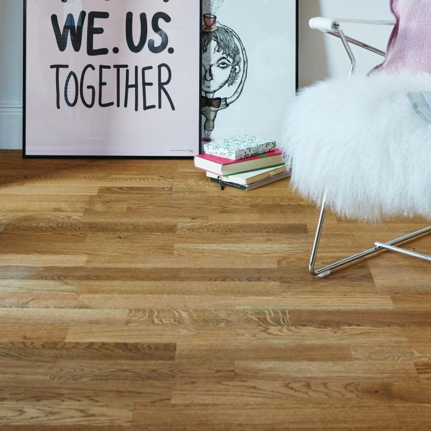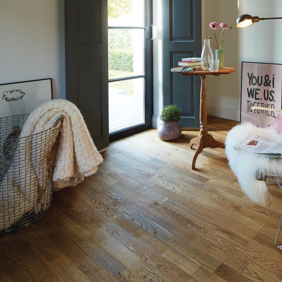 3-stavs parkett gir et levende gulvbilde med naturlig fargespill og variasjon fra treet. Det gir mye karakter, men er fortsatt lett å møblere og innrede rundt.
