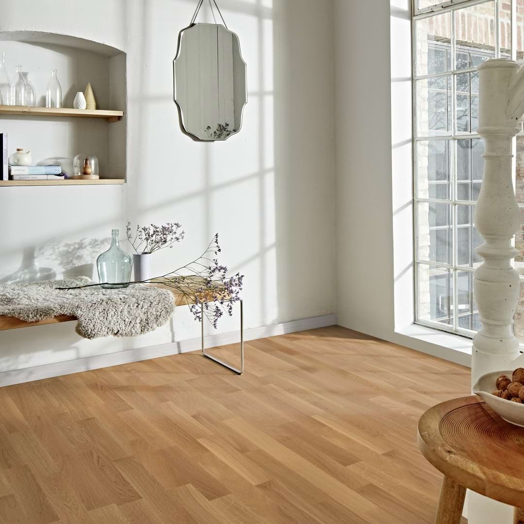Boen 3-Stav Eik Andante Live Matt lakk er et eksklusivt parkettgulv i eik. Fargen transparent gir et gjennomført og elegant uttrykk. Den ikke børstet overflaten fremhever treets struktur og gir en lun følelse under føttene.