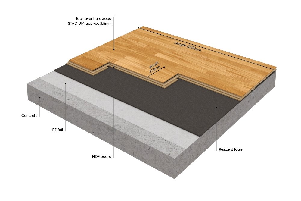 Actiflex Stadium er et sports- og flerbruk gulvsystem med høy deformasjon og rask montering med BOEN 5G låsesystem – uten spesialverktøy.