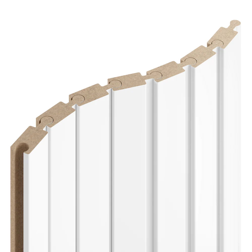 Puzzle-lameller er en smart løsning som kombinerer klassisk lamell-look med ekstra fleksibilitet. Takket være den spesielle “puzzle”-formen kan du lage dekor ikke bare på rette vegger, men også på buede og ujevne flater – som søyler, avrundede vegger eller andre former der vanlige paneler ikke passer.