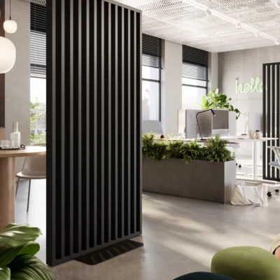 Spilevegg Japandi er en minimalistisk og luftig romdeler som lar deg dele opp soner på en diskret måte – uten å stenge lyset. Den faste rytmen i de vertikale og horisontale profilene gir rommet et rolig, ryddig og harmonisk uttrykk som passer perfekt til japandi-stilen.