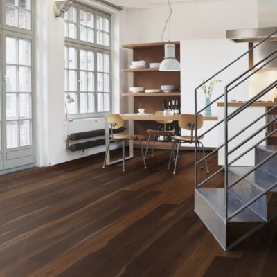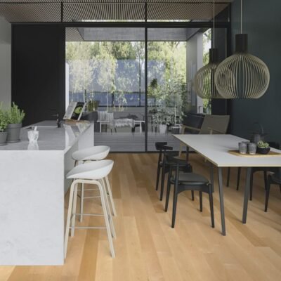 BOEN Chalet skiller seg ut ved at gulvet leveres med planker i ulike bredder og lengder. Det gir et mer unikt og “skreddersydd” uttrykk, og passer spesielt godt i større rom der du vil ha en ekstra eksklusiv helhet.
